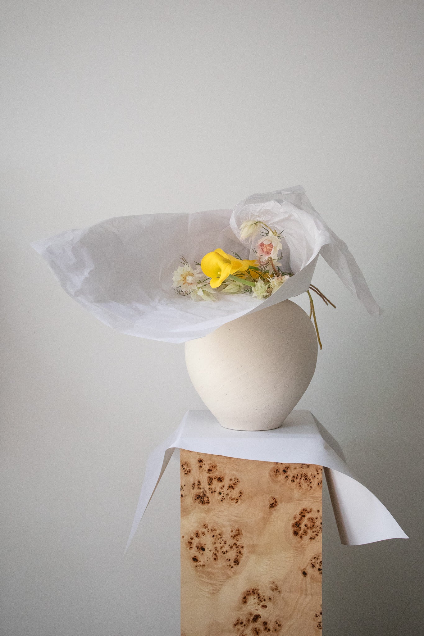 Part of our complement series, a paired back and elevated arrangement, featuring two varieties of interesting and complementary flowers.